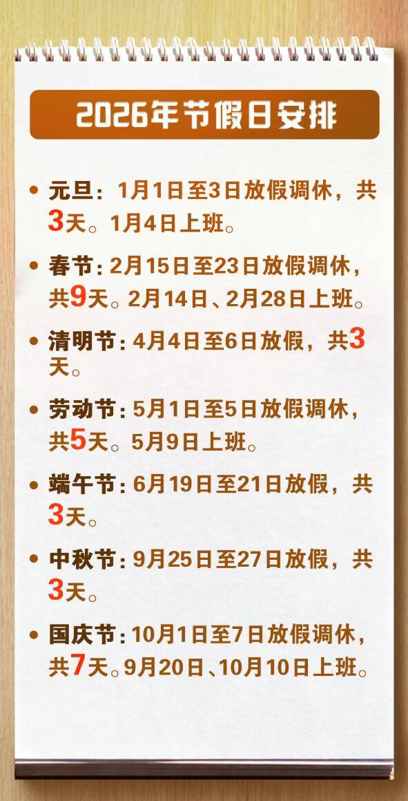 《关于2026年部分节假日安排(pai)的(de)通知》